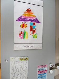 同じく、視覚に効果的なのが、子どもの絵や手紙を扉裏にはるテクニック。