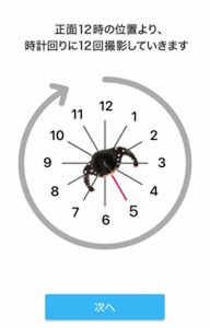 音声に合わせ、スマホのカメラに向かって360度回転すると、計測完了。