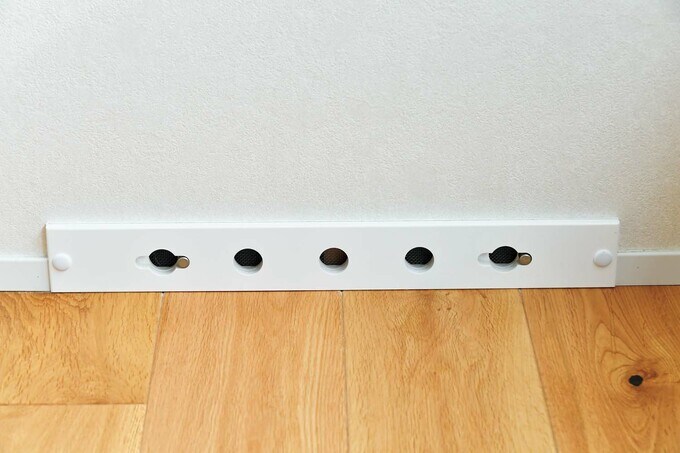 - 萩原邸で採用したのが、タカキホームの得意とする「通気断熱WB工法」。自然の力で開閉する通気口に加え、外壁と室内の壁で挟み込んだ通気層で、室内の空気環境を整える仕組みです。上の写真のように、冬は室内の通気口を閉じて気密性・断熱性を高め、夏は下の写真のように室内の通気口を開けて、外気温より低い床下の空気を全体に行き渡らせます。