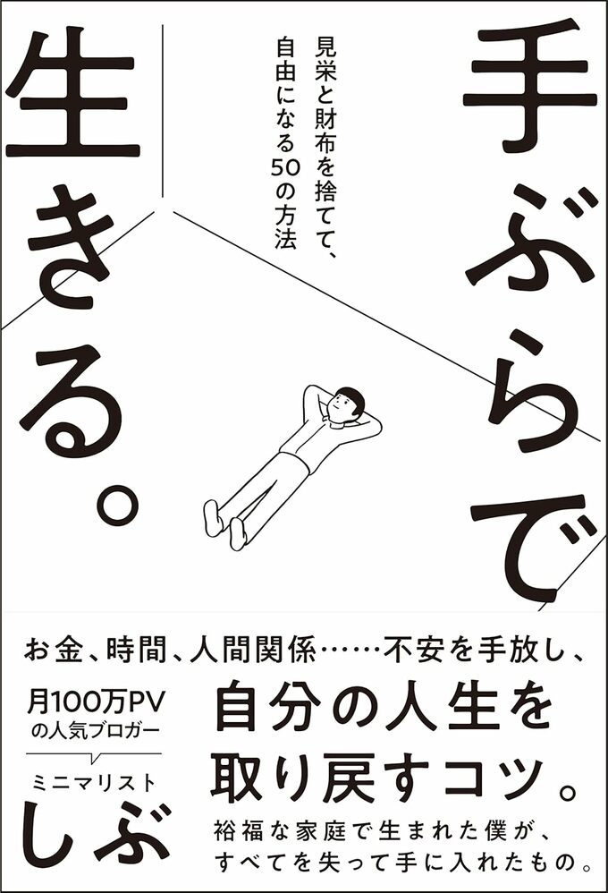 ミニマリストしぶさんの著書『新版 手ぶらで生きる。 見栄と財布を捨てて、自由になる50の方法』(サンクチュアリ出版)では、これ以外にも最小限のお金で生きて、最大限の自由を手にするための暮らし方について掲載しています。