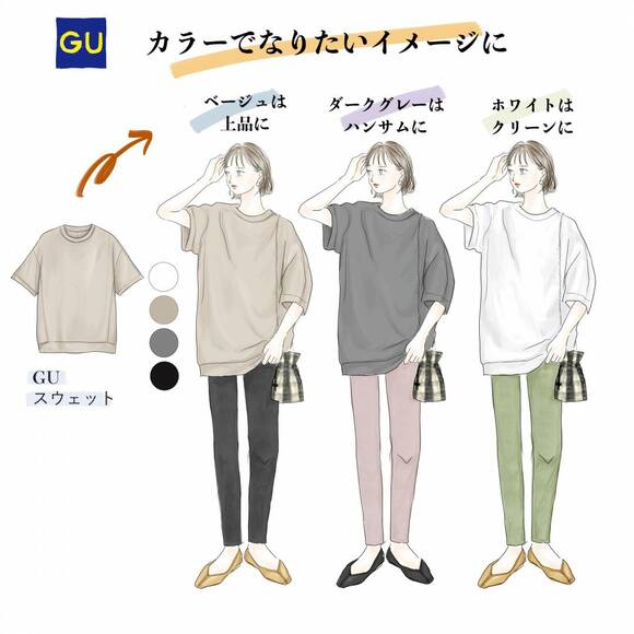 「そんなときはメンズ商品がおすすめです。シンプルなデザインとユニセックスなカラー展開がこなれて見え、じつは手抜きでも“あえてそうしている人”っぽく見えます」と語るのは、元アパレル販売員のイラストレーター・ヤベミユキさん。