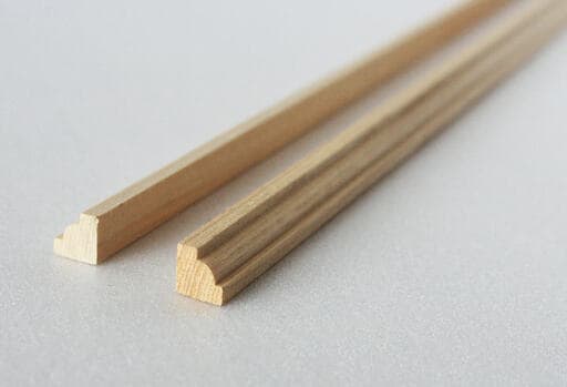 モールディング材とは、壁面の隅や家具調度の装飾に使う「見切り材」のことで、様々な形の装飾を施されたものがホームセンターに売っています。