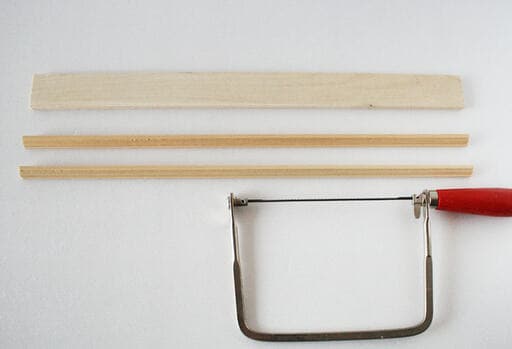 板材&モールディング材を、作りたいハンガーフックの長さに合わせて糸ノコでカットします。