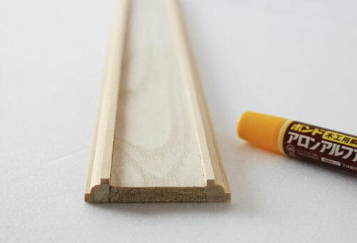 板材の上下にモールディング材を接着します。