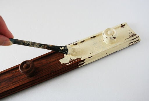 この時、下地のステインを塗りつぶしてしまわないようラフな感じに厚塗りすると、シャビーなイメージに仕上げることができます。