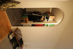黒沢さんが提案した収納のもうひとつが、部屋ひとつ分はある広いW.I.Cです。玄関を入ってすぐ右手のアール壁の先にあり、動線も快適。