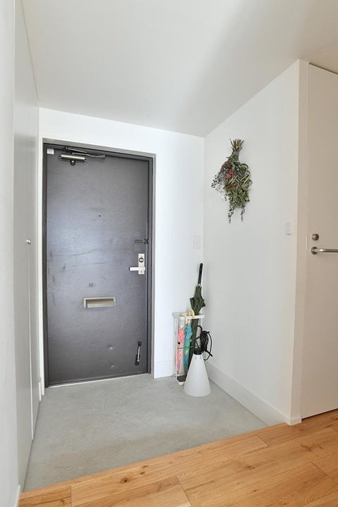 パントリーの奥行きは一部を浅くして、背面にあたる玄関側に大型の靴収納を設けています。玄関にあった既存の下駄箱は撤去して、ベビーカーが置ける広い土間を実現しました。