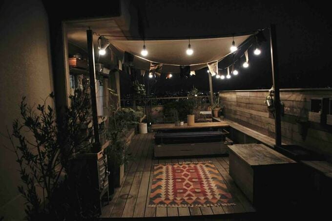 バルコニーは子どもの外遊びに、ホームパーティに大活躍!夜のバルコニーもムードがあって素敵です。