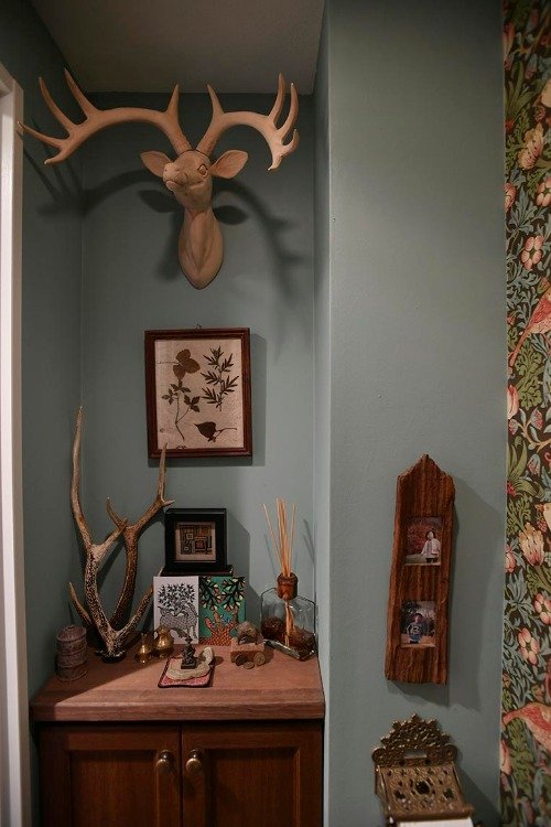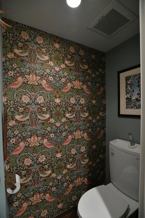 「森がテーマ」というトイレは、ウイリアム・モリスの壁紙が印象的。