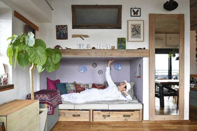 「ソファを置くとリビングが狭くなってしまうので、押し入れを有効活用しました。狭いところに工夫して住むのが得意なんです(笑)」と原さん。