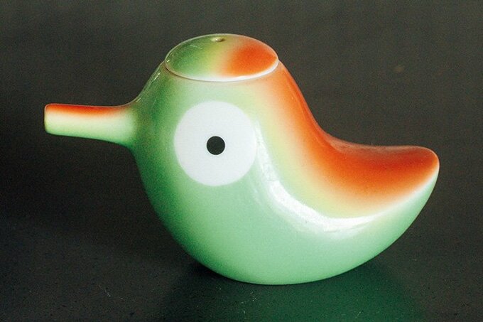 カラフルで愛嬌のある鳥モチーフの醤油差しは、友人からのプレゼント。陶器製。