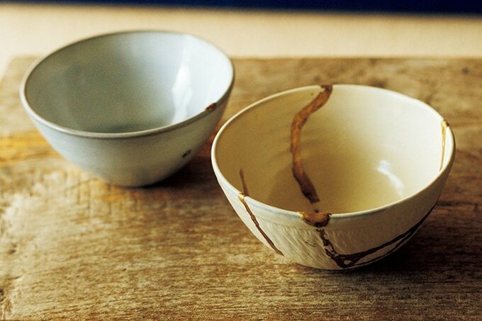 金継ぎが施された茶わん。割れや欠け具合によってひとつひとつ表情が違うところが魅力。