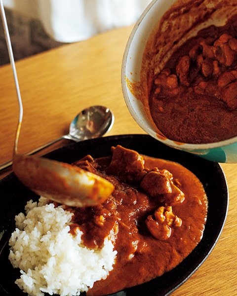 「皿洗いは苦手だけど、料理は好き」という伸也さんお手製のチキンカレー。鶏肉は塩こうじに漬け込んでジューシーな仕上がりに。