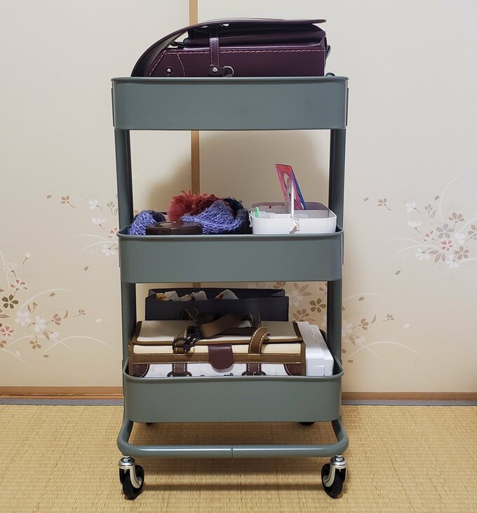 散らからないランドセル収納のコツ。ポイントは子どもが「使いやすい」導線 記事に戻る スクロールで次の画像 (画像 1/5) この記事を読む (画像 2/5) この記事を読む (画像 3/5) この記事を読む (画像 4/5) この記事を読む IKEA「ロースコグワゴン」のグレーグリーン(3,999円) (画像 5/5) この記事を読む 教科書や小物類は、ニトリの棚&ファイルスタンドに収納