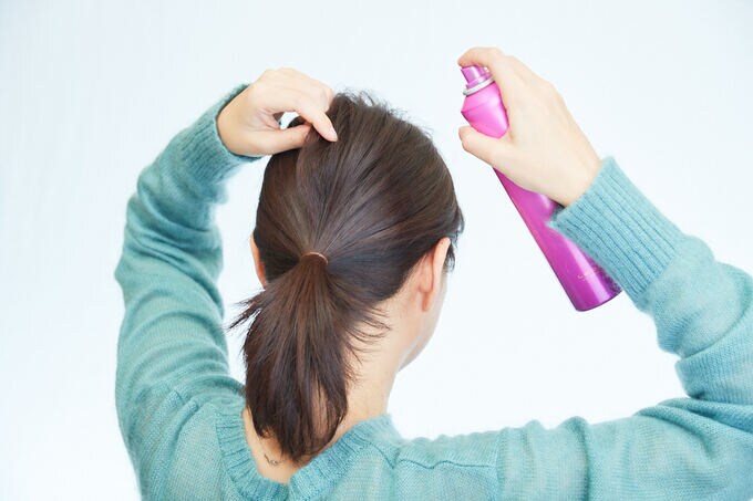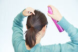 引き出した部分をつまみながら、キープスプレーをかける