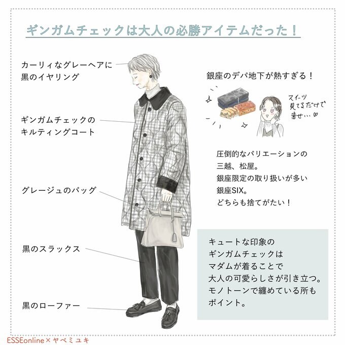 銀座の60代マダムに学ぶ。ギンガムやカラーパンツで春を先取り<東京おしゃれ図鑑vol.5> 記事に戻る スクロールで次の画像 (画像 1/3) この記事を読む (画像 2/3) この記事を読む (画像 3/3) この記事を読む