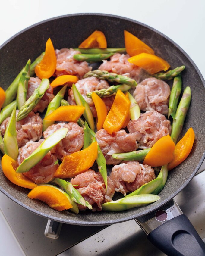 「いつもの肉野菜炒め」格上げレシピ。豚こま肉とチーズマヨが相性抜群 記事に戻る スクロールで次の画像 (画像 1/2) この記事を読む 豚こまとアスパラのチーズマヨ炒め (画像 2/2) この記事を読む パンチのある食材と合わせて食感も楽しむ