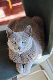 先住ネコのポコは、シルバーグレーの毛色やエメラルドグリーンの瞳が美しいロシアンブルーのメス(13歳)。弟分のミランより偉いと思っている節があり、性格はまるで女王様!?
