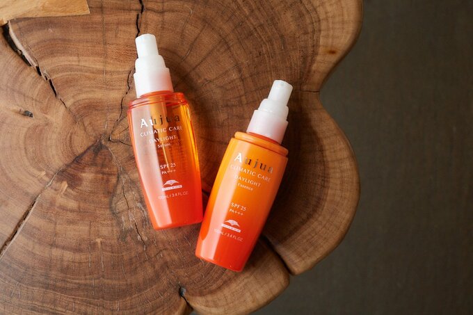 八木さんおすすめのアウトバストリートメント。UVカット効果があり、頭皮につけることで日やけどめにも。仕上がりの質感によって使い分けられます。【左から】サラサラで、ツヤのある髪に。オージュア デイライト セラム、柔らかく、まとまりやすい髪に。オージュア デイライト エッセンス ともにSPF25 PA+++ 100ml ¥2860(ミルボン/美容室専売品)