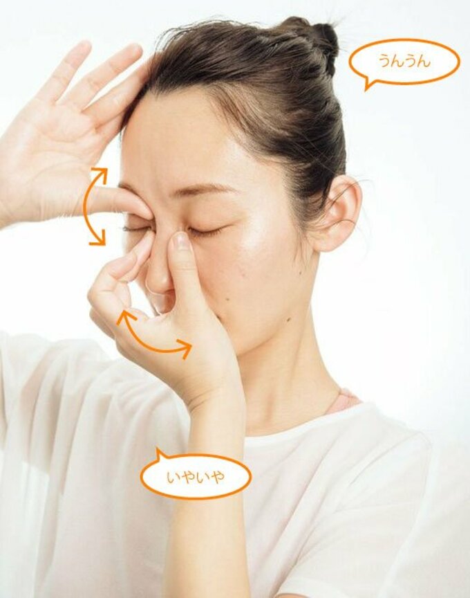 眉間のシワとクマを撃退し、老け見えを阻止。道具いらずの目元ほぐし 記事に戻る スクロールで次の画像 (画像 1/7) この記事を読む (画像 2/7) この記事を読む (画像 3/7) この記事を読む 左右各15秒 (画像 4/7) この記事を読む 1か所5回 (画像 5/7) この記事を読む 左右各10回 (画像 6/7) この記事を読む 外に回す動きも (画像 7/7) この記事を読む