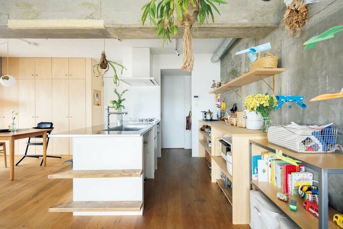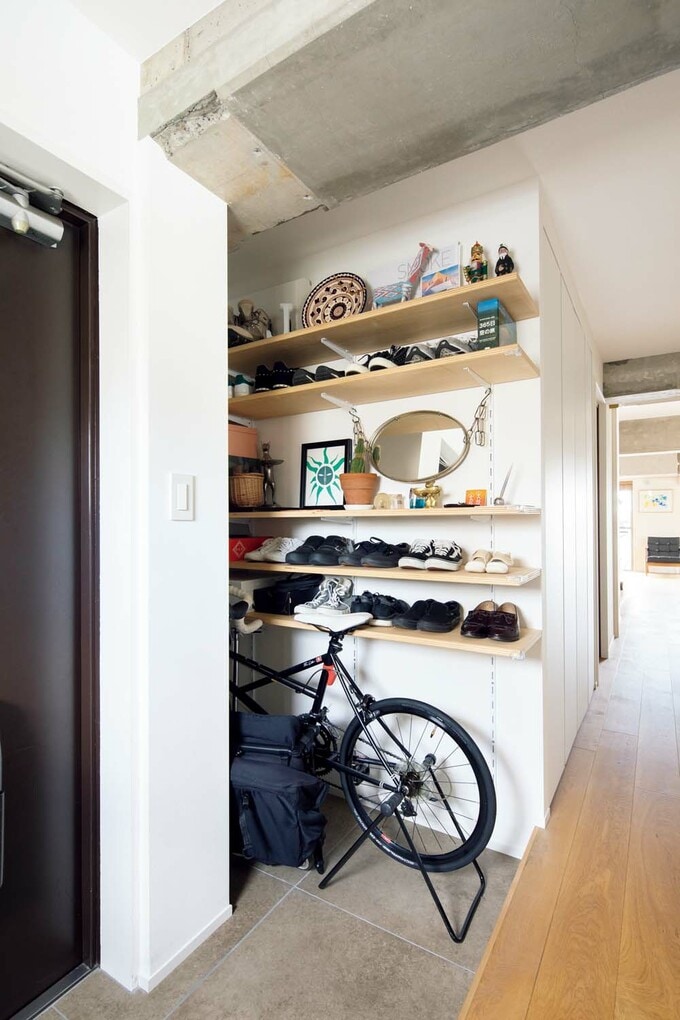 コンクリート現しの広い1LDKにマンションリノベ。造作の収納が美しい! 記事に戻る スクロールで次の画像 (画像 1/20) この記事を読む 足場板の古材を飾り棚に用いた、遊び心あふれるキッチン。生活感の出やすい冷蔵庫は、併設したパントリーに置いたので空間はスッキリとした印象に (画像 2/20) この記事を読む (画像 3/20) この記事を読む (画像 4/20) この記事を読む (画像 5/20) この記事を読む (画像 6/20) この記事を読む (画像 7/20) この記事を読む (画像 8/20) この記事を読む (画像 9/20) この記事を読む (画像 10/20) この記事を読む (画像 11/20) この記事を読む (画像 12/20) この記事を読む (画像 13/20) この記事を読む (画像 14/20) この記事を読む (画像 15/20) この記事を読む (画像 16/20) この記事を読む (画像 17/20) この記事を読む (画像 18/20) この記事を読む キッチンの飾り棚には、コンクリートの素材感と相性がよい真ちゅう製の棚受け金物を採用 (画像 19/20) この記事を読む 夫が窓辺に棚板を取りつけた玄関のディスプレイコーナー (画像 20/20) この記事を読む