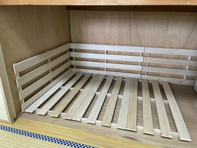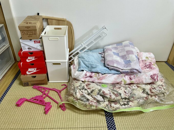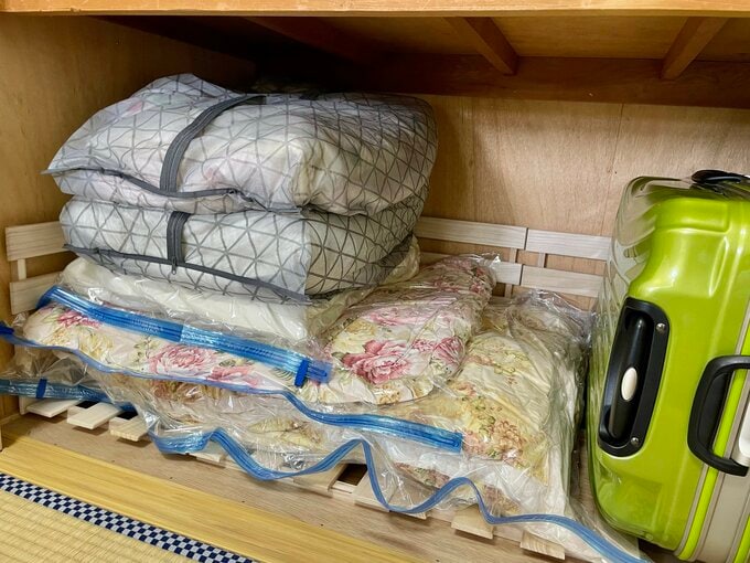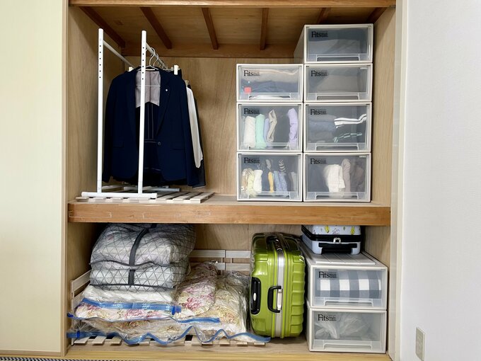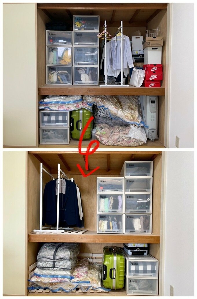 築47年の小さな団地。押し入れの布団や靴のから箱を捨てて「7割収納」に 記事に戻る スクロールで次の画像 (画像 1/9) この記事を読む 【Before】整理整頓してもギュウギュウだった押し入れ (画像 2/9) この記事を読む ジメジメ対策で敷いたすのこ板 (画像 3/9) この記事を読む すのこ板の上には圧縮した布団を (画像 4/9) この記事を読む 上段には出し入れする回数が多い洋服を収納 (画像 5/9) この記事を読む 下段には布団や年1、2回しか使わないものを収納 (画像 6/9) この記事を読む 布団・靴の空き箱・収納ケースなどを処分 (画像 7/9) この記事を読む 【After】すっきりした押し入れ (画像 8/9) この記事を読む (画像 9/9) この記事を読む 【Before→After】7割収納を実現した築47年団地押し入れ