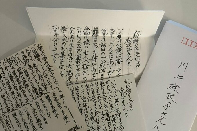 56歳・川上麻衣子さん「うまくいかない日に思い出す」恩師と60代目前の決意 記事に戻る スクロールで次の画像 (画像 1/5) この記事を読む (画像 2/5) この記事を読む スウェーデンを訪れた50歳の頃の写真 (画像 3/5) この記事を読む 小学生時代の川上さん(左)と親友の女性 (画像 4/5) この記事を読む 恩師から届いたたくさんの手紙は宝物 (画像 5/5) この記事を読む 恩師の指導のもと、初めて学芸会で主役を演じたメリーポピンズの舞台(写真右から2番目)