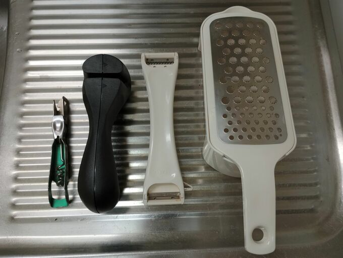 50代、手持ちのキッチングッズは13個だけ。圧力鍋や家電を手放すことができた理由 記事に戻る スクロールで次の画像 (画像 1/3) この記事を読む キッチンの棚の上。菜箸2組、キッチンスケール、まな板を出しっぱなしに (画像 2/3) この記事を読む よく使うキッチングッズはつるしてあります (画像 3/3) この記事を読む 引き出しに収納してあるグッズ。左から、多用途の栓抜き、包丁とぎ器、ピーラー、おろし金
