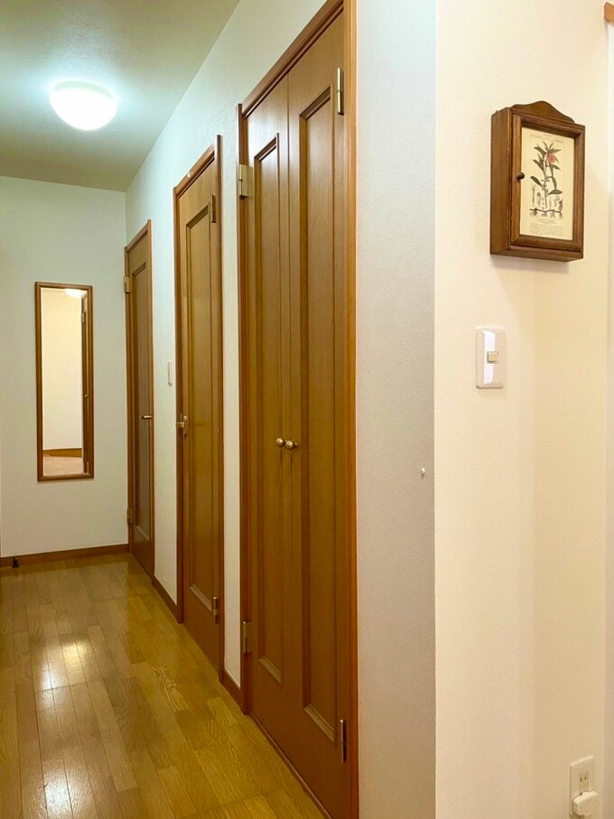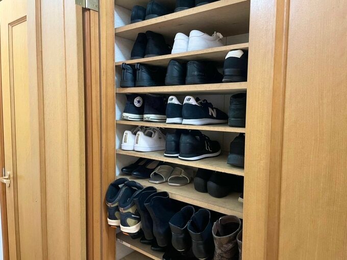 60代夫婦が捨てても困らなかったもの3つ。狭い家がすっきり片づく 記事に戻る スクロールで次の画像 (画像 1/7) この記事を読む ライフさんのご自宅の玄関。靴箱を処分したら、すっきりした空間に。 (画像 2/7) この記事を読む もともとは、花ビンの位置に木製の靴箱がありました。 (画像 3/7) この記事を読む 玄関を上がって1つ目の扉(手前の扉)が収納スペース。こちらに靴をしまっています。 (画像 4/7) この記事を読む 夫婦ふたり分の靴を収納。ホームセンターで棚板を購入。サイズを計測し、ノコギリで切って作成。 (画像 5/7) この記事を読む 洗面所。備えつけのキャビネットを撤去し、すっきりした空間に。来客がないときは、飾り棚に歯ブラシを置いています。 (画像 6/7) この記事を読む キッチンに鏡を設置。ライフさんのお化粧や、夫のひげそりはこの鏡で行います。 リビングとつながっているため、洗面所よりもエアコンが効き、過ごしやすい場所。 (画像 7/7) この記事を読む 手をふくハンドタオルは、バスタオルかけに。洗面台の背面に位置していているため、使いやすい。