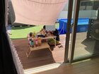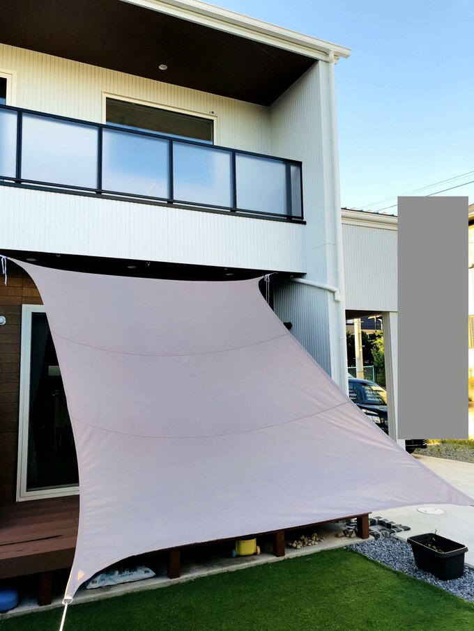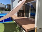 筆者の家のウッドデッキ。シェードがあるおかげで、日陰ができて快適!