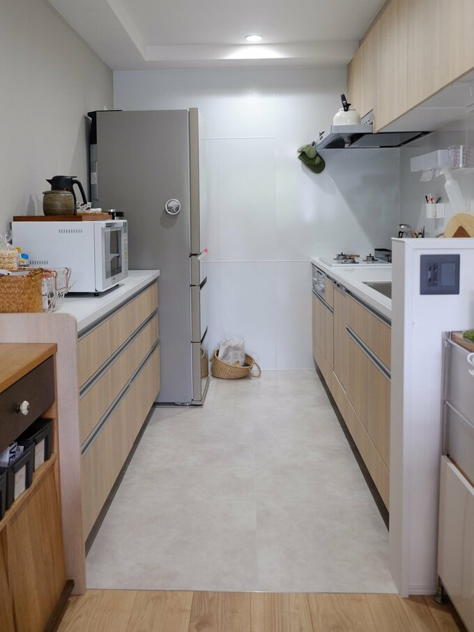 40代新居づくりで「採用して本当によかった」もの。水回りの掃除が画期的にラクに 記事に戻る スクロールで次の画像 (画像 1/8) この記事を読む 中古マンションのリノベーションで「フロアタイル」を採用した理由 (画像 2/8) この記事を読む 前の住まいの賃貸マンションでは、水回りにクッションフロアを使用 (画像 3/8) この記事を読む リノベ前の新居の洗面脱衣所 (画像 4/8) この記事を読む リノベ中の洗面脱衣所 (画像 5/8) この記事を読む トイレ:PST3054淡ベージュ (画像 6/8) この記事を読む 洗面脱衣所:PST3055濃グレー。並べただけで目地感が出ています (画像 7/8) この記事を読む キッチン:PST3053淡グレー (画像 8/8) この記事を読む