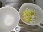 ボウルとザルを使用。ザルに切った野菜を入れて、ボウルでフタをして上下に振ります