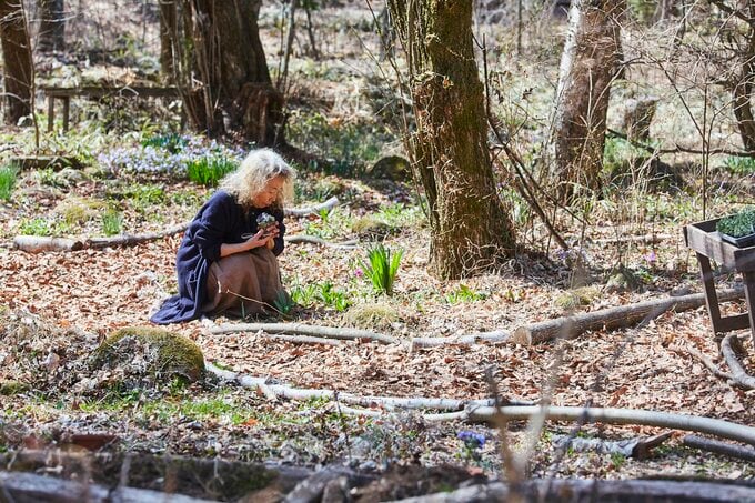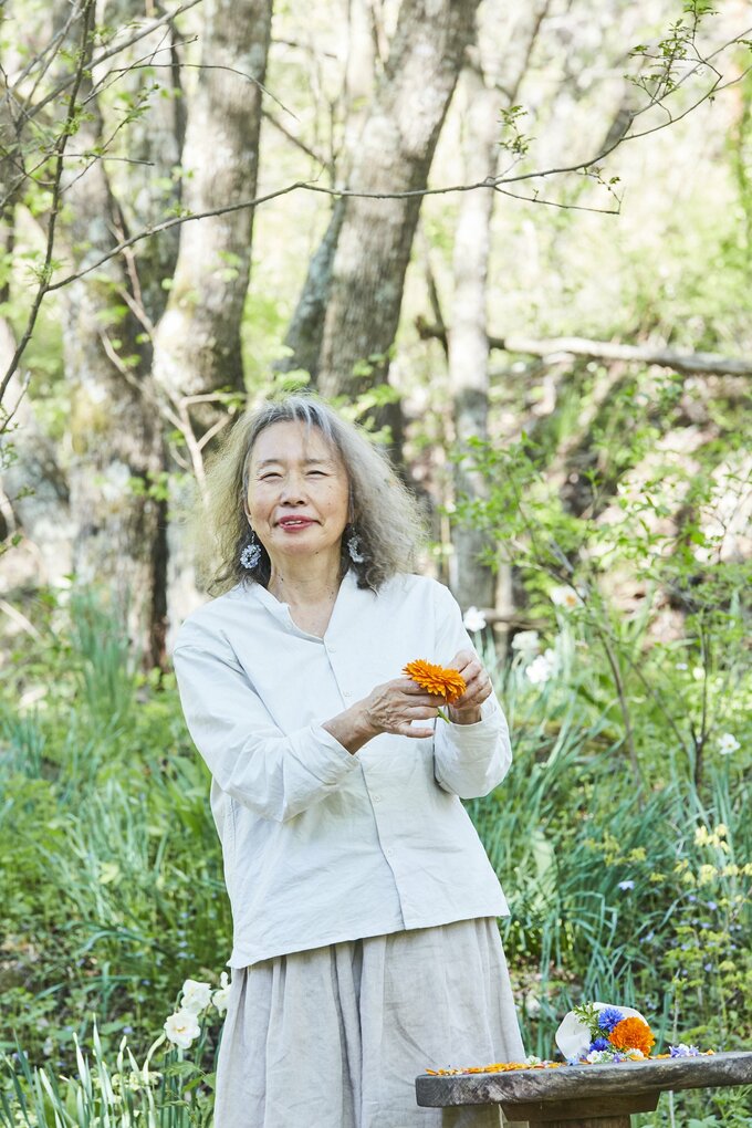萩尾エリ子さん。蓼科ハーバルノート・シンプルズ(長野県)の庭にて