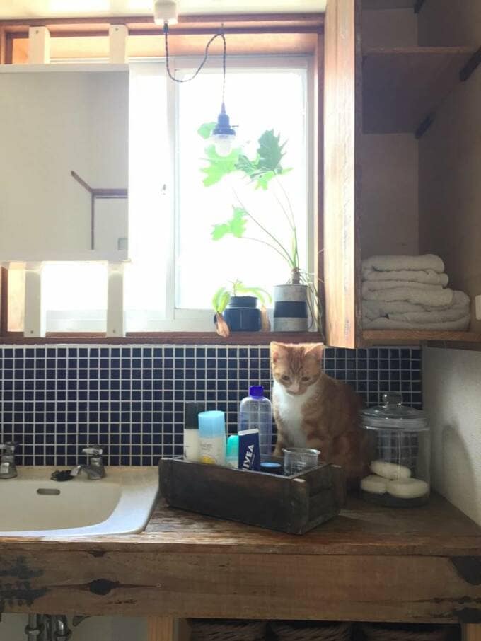 歯ブラシや日用品などをまとめたカゴは来客前に入れ替え