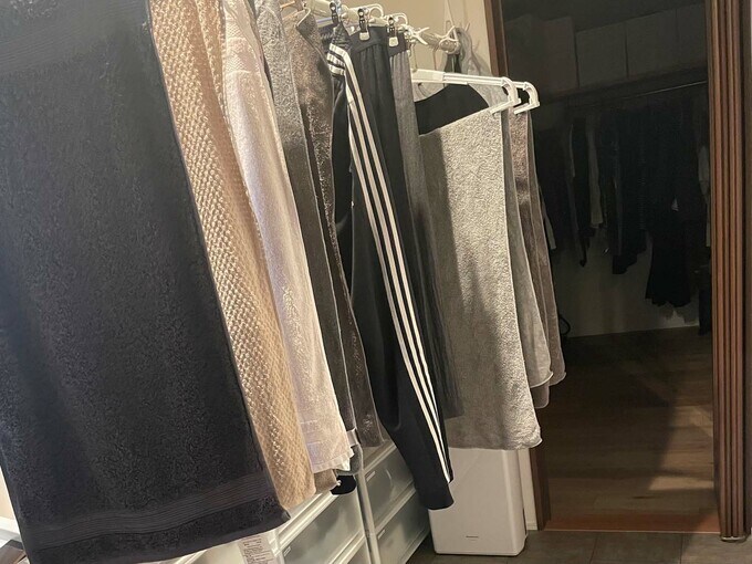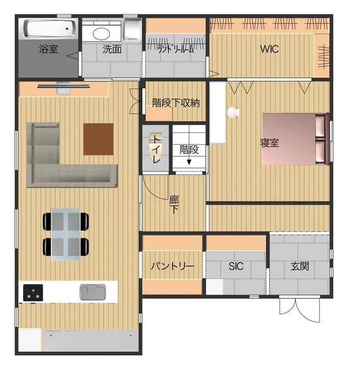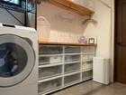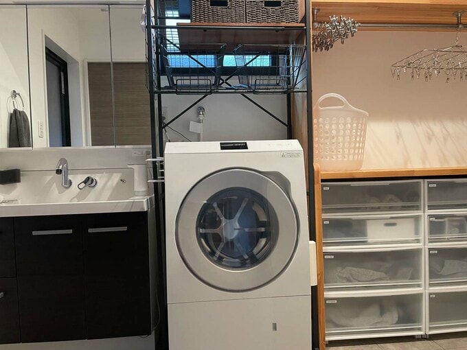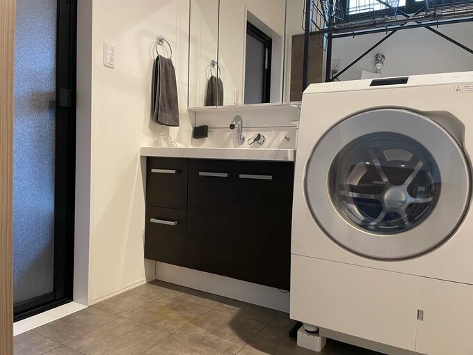 洗面所に入ると、ランドリールームと一体のスペース。扉の先にはウォークインクローゼットが!
