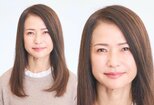 (左)額が全開のいつもの生え際(右)クセをとって生え際を隠した状態