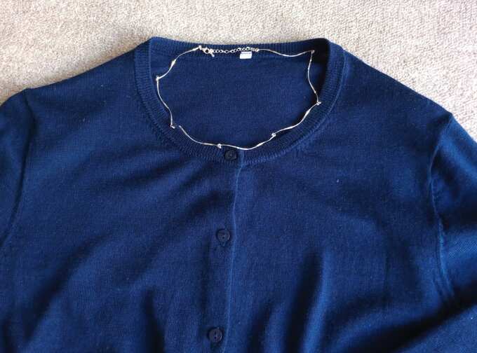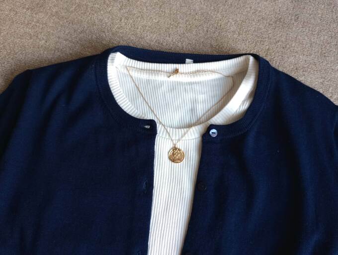 いつものカーディガン+カットソーに、ネックレスをプラスして雰囲気をチェンジ