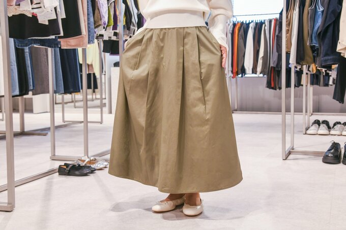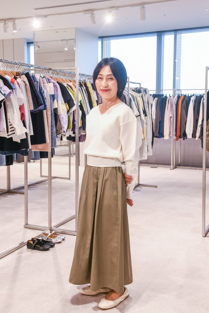 60代からの「GU」春コーデ。ロングスカート+上品ニットで体型カバーも 記事に戻る スクロールで次の画像 (画像 1/6) この記事を読む 60代のYouTuber・ライフさん (画像 2/6) この記事を読む 「ボリュームスリーブVネックセーター(長袖)」OFF WHITE 2,290円 ※一部店舗のみ販売 (画像 3/6) この記事を読む タックフレアミディスカートOLIVE2,990 ※一部店舗のみ販売 (画像 4/6) この記事を読む 「バレエシューズ」OFF WHITE 2,290円 (画像 5/6) この記事を読む (画像 6/6) この記事を読む 「メタル&チェーンネックカフ」590円