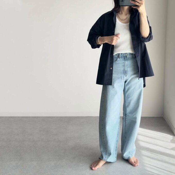 さまざまなシューズと合わせやすい、GU「バレルレッグジーンズ」