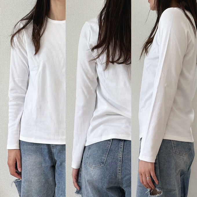 人気の「ソフトリブクルーネックT」コーデを紹介
