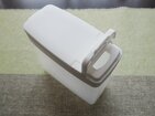 「揉んでほぐせる調味料ストッカー(110円)」サイズ:5cm ×10.1cm ×10.9cm、容量:320ml、材質:容器 ポリエチレン/フタ・キャップ・留めパーツ ポリプロピレン、耐熱温度 60℃、耐冷温度 -10℃