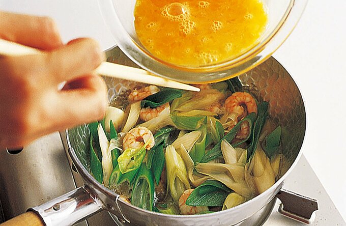 プリプリ食感がたまらない「エビと長ネギの卵とじ」。半熟アツアツでご飯に乗せて食べても美味 記事に戻る スクロールで次の画像 (画像 1/3) この記事を読む 長ネギとエビの卵とじ (画像 2/3) この記事を読む (画像 3/3) この記事を読む