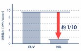 15nmパターン形成時における、既存の光露光技術(ArF液浸、EUV)とNILの消費電力比較
