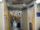 電車の車両にはつり革ではなく、つかまる棒が各所にあります