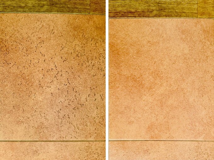 水ぶきでは落ちない床の黒ずみも「アルカリ電解水」でスッキリ落ちる!