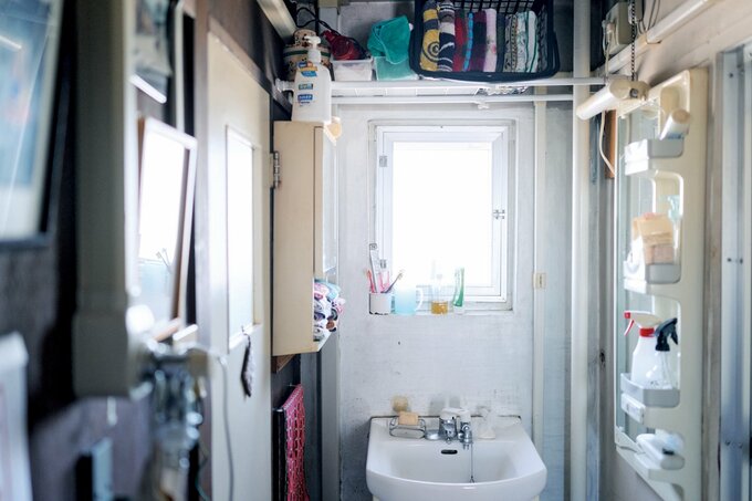 一緒にYouTubeをしている10代の孫が、「エモい!」という洗面所です(笑)。ここも60年前の姿を残しています