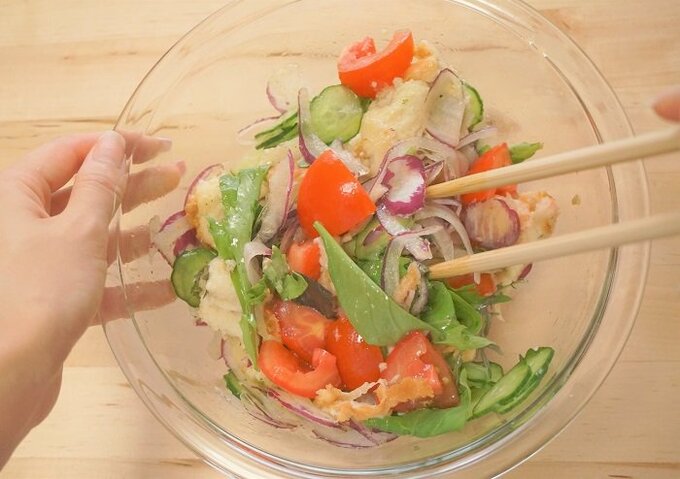 固くなった食パンを活用!暑い日に食べたいイタリア風サラダ 記事に戻る スクロールで次の画像 (画像 1/7) この記事を読む 食欲がないときもさっぱり食べられます (画像 2/7) この記事を読む (画像 3/7) この記事を読む (画像 4/7) この記事を読む (画像 5/7) この記事を読む (画像 6/7) この記事を読む (画像 7/7) この記事を読む