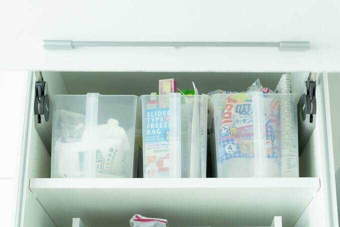 キッチン収納の基本アイテム、半透明ボックス