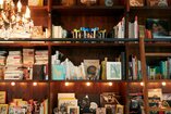 写真中央は洋書が主に並ぶ棚。手前のブルーの本は自著『めざめの森を めぐる言葉』(講談社)。心を目覚めさせてくれた64の言葉についてていねいに綴った美しいエッセイです