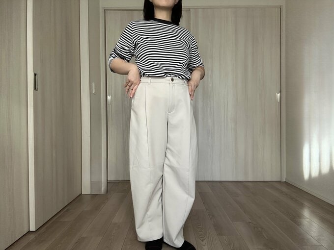40代、旅行で必ずはいて行く「GUのパンツ」。1490円で快適、きれい見えも体型カバーもかなう 記事に戻る スクロールで次の画像 (画像 1/4) この記事を読む GUの「ブラッシュドワイドテーパードパンツQ」 (画像 2/4) この記事を読む (画像 3/4) この記事を読む (画像 4/4) この記事を読む